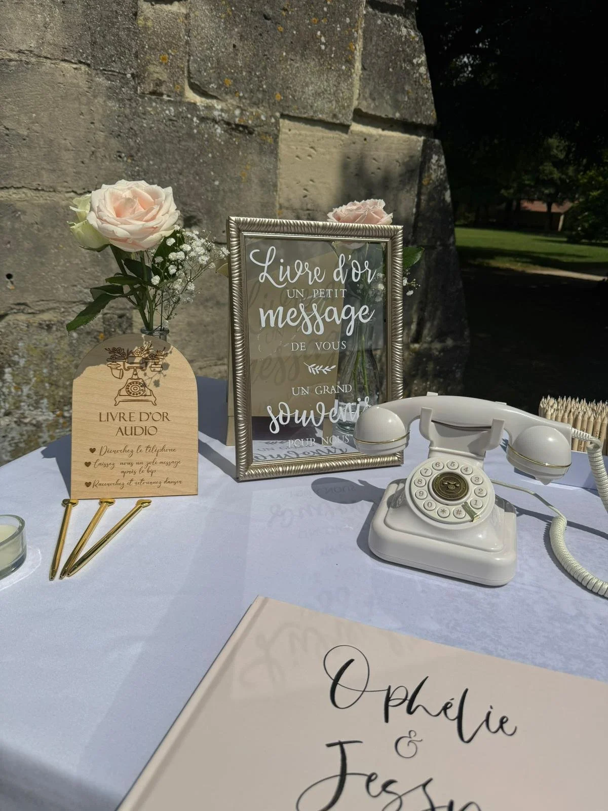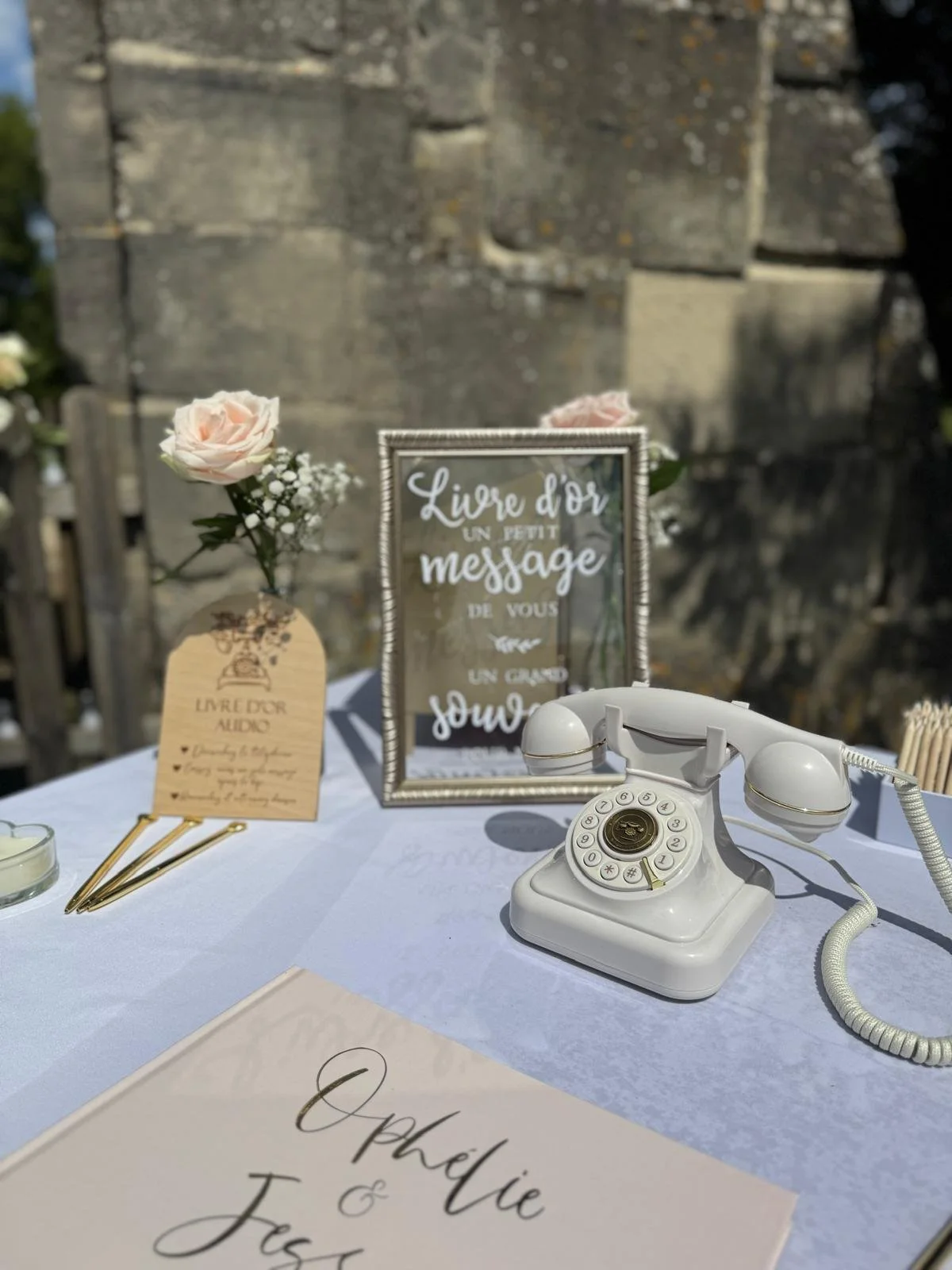 Le livre d’or audio est une animation originale qui permet à vos invités de laisser un message vocal souvenir pendant votre événement. Il leur suffit de décrocher le téléphone et d’enregistrer leurs félicitations, anecdotes ou mots d’amour après le bip.