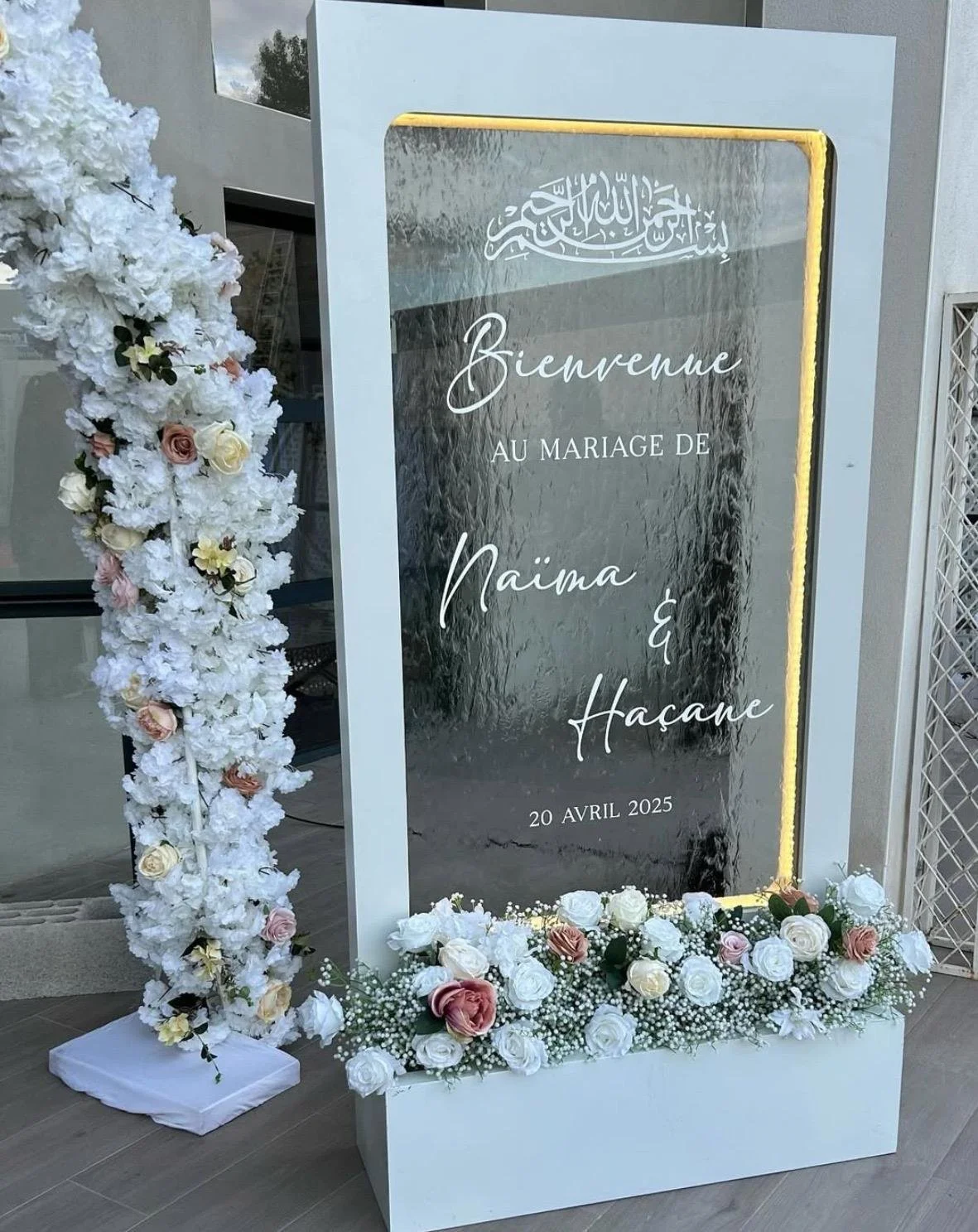 Idéal pour sublimer l’espace réception et créer un coin convivial propice aux échanges et aux photos, le panneau fontaine combine fonctionnalité et esthétisme, offrant une mise en scène élégante qui marque les esprits et apporte une véritable valeur ajoutée à votre décoration.