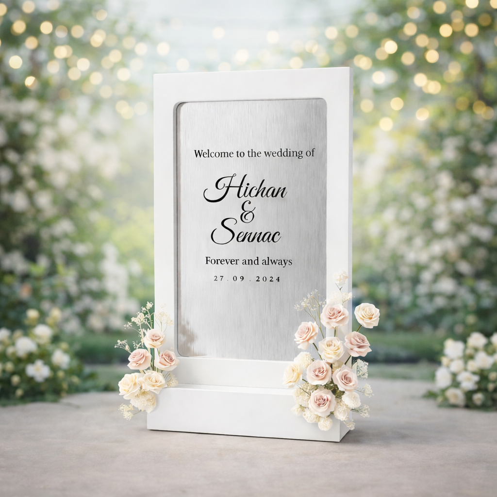 Son design esthétique s’intègre parfaitement à tous les thèmes (chic, bohème, moderne ou classique) et peut être personnalisé avec prénoms, date, message ou éléments floraux afin de créer un rendu unique et parfaitement adapté à votre événement.